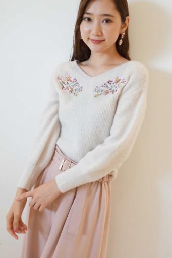 モフモフ モヘア エンブロイダリー ニット
