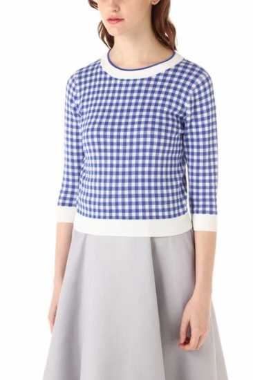 ギンガムチェック柄のジャガードニット。冬のコートからちらっと見えるギンガムチェックニットは新鮮です。爽やかでライトな色合いはもちろん暖かくなってからも活躍させられるアイテム。シンプルなボトムとの合わせでニットを主役にしたスタイリングがおすすめです。