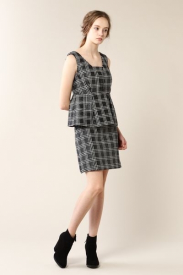 今までにない透明なフィルムを織り交ぜた、チェック柄のツイードスカート!台形スカートはデザインを削ぎ落し、スッキリして生地の可愛さが引き立ちます。タートルやシンプルなニットやブラウスと相性抜群、ビックニットを合わせてニットからスカートの裾をチラ見せした着こなしも高感度でお勧めです。セットアップでも着られるスカートなので、同シリーズの(092-5210067)ブラウスとワンピースのようなセットアップ対応も可!