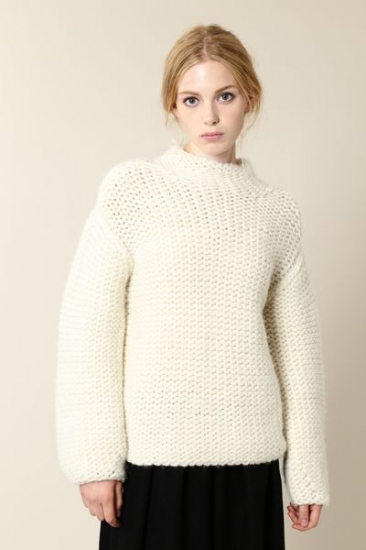 太番の糸をざっくり手編みで編んだビックニット!今シーズンはビックシルエットも人気があり、ミドルネックもJILLらしいフェミニンな雰囲気を醸し出しています。着るだけで存在感があるり、女性らしいニュアンスを出せます。シンプルなボトムスと合わせるだけでキマる1枚です。