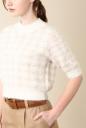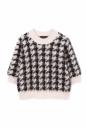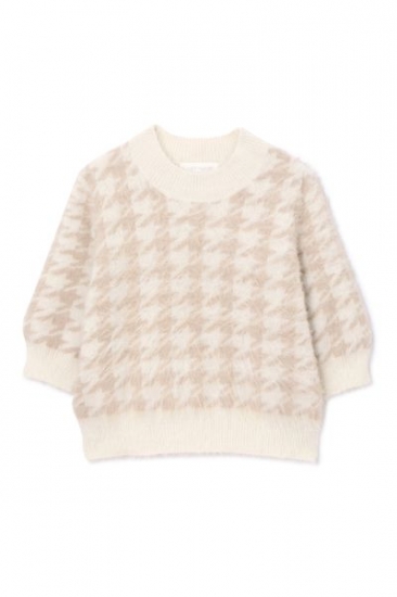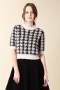 アンゴラ混の糸で大胆なハウンドトゥース柄のジャガードトップスです。トレンドの詰まった襟や、コンパクトなサイズがJILLっぽいアイテム。表面を掻いてシャギーに仕上げているので、柄が柔らかく見え女性らしさたっぷりな1枚です。