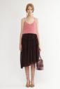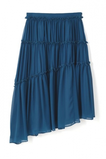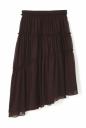 柔らかい素材感がフェミニンな雰囲気のアシンメトリースカート。ティアードのように段々をつけて、ふんわり感を調節したギャザーが大人ロマンティックなデザイン。こっくりカラーが重たくなりがちな季節に軽さを出します。ざっくりニットを合わせたコーディネートがお勧めです。