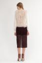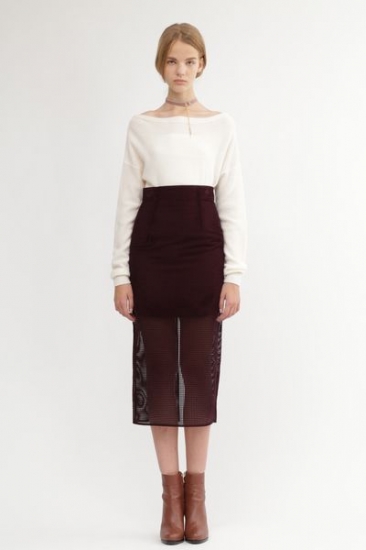 シンプルながらも優雅なシルエットを醸し出すタイトスカート。ラッセルのメッシュにツイル柄のフロッキープリントをのせたオリジナル素材です。深いスリットと短い裏地であえて透け感を演出して、レッグラインに女らしさを加速させます。シンプルニットや、クラシカルなブラウスを合わせた、幅広いスタイリングを1枚です。※裏地付き