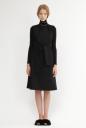 上質なメルトン素材で仕立てたワンピース。メルトン特有のハリ感と重さで出すシャープで高級感のあるシルエット。太めのステッチと深く入ったスリットが特徴になり、メリハリのある女性らしい大人の強さを覗かせます。インナーに、タートルニットをレイヤードしてクラシカルに、後ろからまわしたベルトは、左右どちらかで肩結びして個性的なアクセントを作ります。※裏地付き