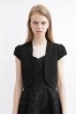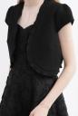 コンパクトに羽織れるスッキリボレロ!ジョーゼットの気品ある風合いに、襟ぐりのフリルも密やかに揺れるようにデザインしています。シンプルさのあるシルエットなので、レースドレスと合わせやすいアイテムです。