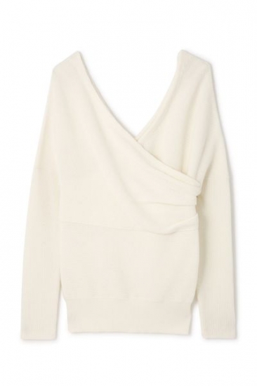 肌触りのよいウール素材のハイゲージニット!身頃や袖はすっきりとメリハリがあり、胸周りのカシュクールのような、重なりのデザインがポイントです。ハイライズなスキニーパンツで大人カジュアルに、コンパクト丈なので、スカートでフェミニンな着こなしもお勧めです。