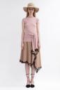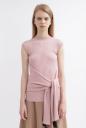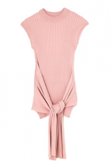レーヨン×ナイロン糸ですっきりした落ち感のあるドレーピーな素材のデザインニット!前で結んでアレンジができ、ボディラインに沿って女性らしいシルエットを演出します。スキニーデニムと合わせたスタイリングがお勧めです。