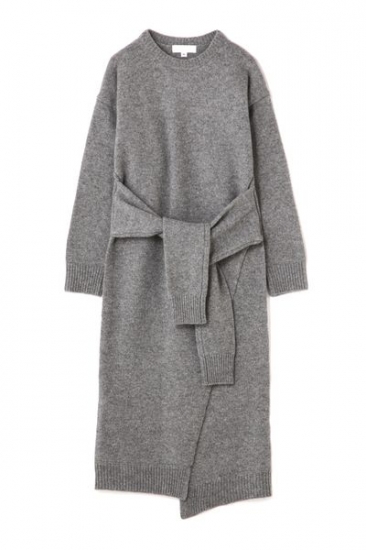 肌触りのよいウール素材で仕立てたニットワンピース。ボディに沿ったシルエットは、ウエストの袖を結んだようなデザインで引き締めます。ミドルゲージで深いスリットが、レッグラインに女性らしい隙を覗かせつつ、足さばきも快適。長めな着丈が今年らしさを狙い、1枚でキマるアイテムです。