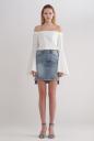 タイプライターワッシャー仕上げの素材なので、こなれ感のあるブラウス。トレンド感のある、フレアスリーブや大げさに長い、太いといったアンバランスな袖の変化がポイント。肩ヒモは付けていますが、肩ヒモを外してオフショルダーとしての着こなしが断然オススメです。デニムやジャンスカやフレアパンツなど、リラックス感のあるスタイリングが組めます。※肩ヒモ取り外し可