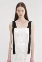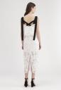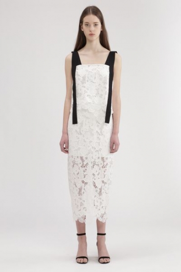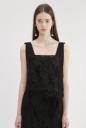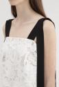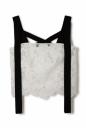 オリジナルのとてもスペシャルなレースで仕立てたキャミブラウス。部分的に模様を変えた繊細なレースに、肩ヒモを後ろでクロス、前で垂らしたこだわりのディティール。ワイドパンツでカジュアルダウンや、同シリーズのスカートとセットアップもお勧めです。