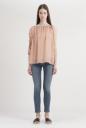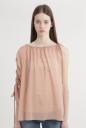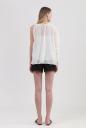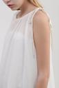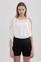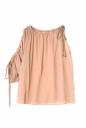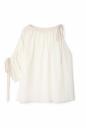 左右袖の長さをアシンメトリーにした変形ブラウス。ショルダーのヒモを結びアクセントに、清涼感のある生地で大人マリンムードたっぷりな1枚。ありそうでないアンバランス感が引き込まれるデザイン。ヒップの隠れる着丈なのでリラックス感があり、ボトムINもしやすくなっています。