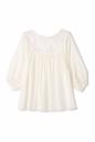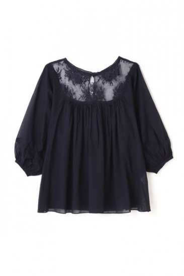 透けるような繊細なインド綿で仕立てた大人気ブラウスがアップデートして登場。デコルテをフチ取るように施されたレースが、女性らしさを覗かせるデザイン。大きなカフスと平面的なパターンに、ギャザーをたくさん入れた、カフタンのようなシルエットが特徴。