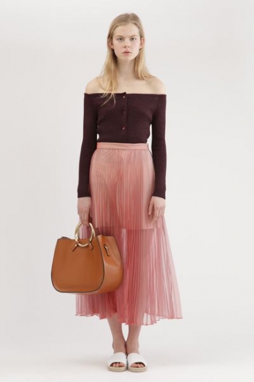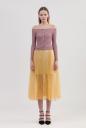 シャンブレーオーガンジーに細いプリーツを施した繊細なスカート。長めの丈にオーラを放つシアー感があり、裏地は短い透け感を楽しんでいただけるデザイン。オフショルニットやシャツ、シンプルトップスなど、今シーズンならではの特別感のあるスタイリングが完成します。