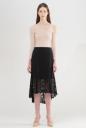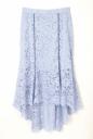 コード入りレースにパイピングが効いた優美なスカート。後ろが下がったスカラップヘムやマーメイドシルエットが女性らしい身体のラインを際立たせます。春のキレイ色がポイントになり、オフショルブラウスやシンプルなニットやカットソーをまで相性よくコーディネートが組めます。※裏地付き