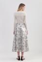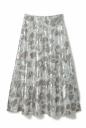 薄手のサテン生地にプリントした後、シルバーの箔をのせた凝った手法のロングフレアスカート。たっぷりのフレアを活かした大人の女性にぴったりな1枚です。ボディにフィットしたニットや、カジュアルにTシャツ、ワンショルダーなど、肌見せの効いたスタイリングまでお勧めです。※裏地付き
