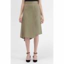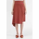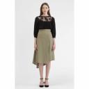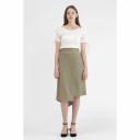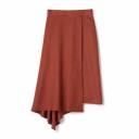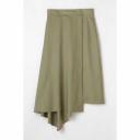 さっぱりとした生地で仕立てキレイ色が目を引くアシンメトリースカート。変形ヘムラインやラップ巻きのようにスリットを施し、裾に向かって動きを出したフェミニティーなデザイン。春ニットやブラウスやカットソーをINした着こなしまで、大人っぽさと遊び心のあるディティールを楽しめる1枚です。※裏地付き