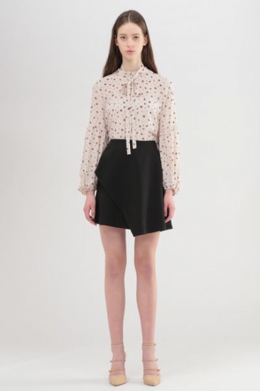 まるでラップ巻きのように重ねた変形スカート。スタイルアップを狙えそうな膝上の大人丈に春カラーで新鮮なアプローチ。甘過ぎない個性を感じさせる変形ディティールで遊びのある仕上がりです。シンプル物や袖にデザインのあるアイテムもスタイリングが映える1枚です。※裏地付き