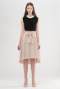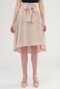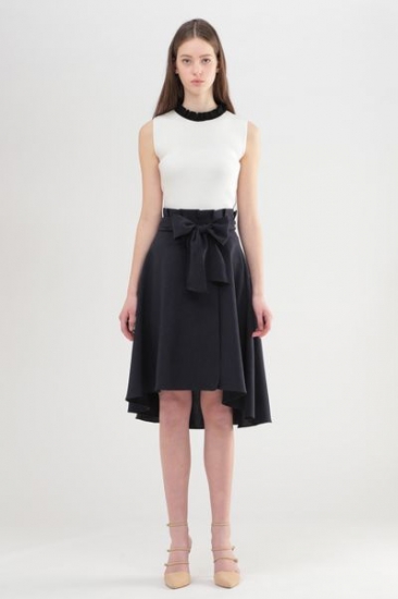 ウエストにポイントがあるフェミニンなラップ風のフレアスカート。春にぴったりな爽やかな風合いやカラーで仕立て、ウエストにタックや共地リボンでINが映える仕上がりです。ヘムラインは前後で差丈で足取り軽やかかなニュアンスを引き出せそうです。ブラウスを合わせたコーディネートがお勧めです。※裏地付き