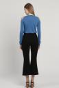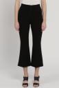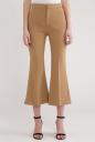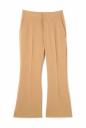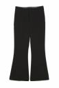 トリアセポリのトリプルクロスのフレアパンツ。ハイウエストで仕立てているので、おしりがキレイに見えます。太ももから膝まで細めにし、膝下から大胆なフレアシルエットの1本。シンプルニットやデザインニットを合わせたスタイリングがお勧めです。