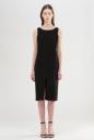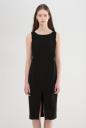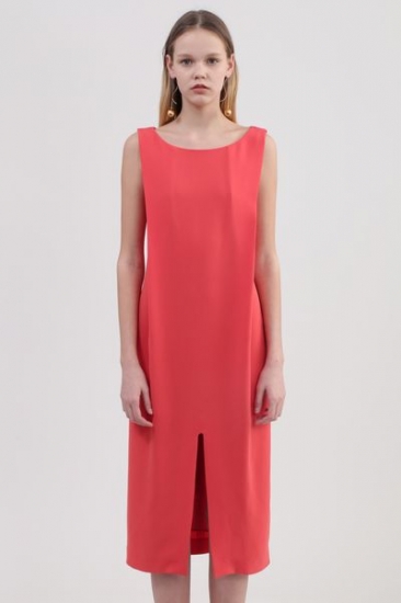 凜とした縦長シルエットで大人っぽさを強調するドレス。セクシーな背中開きと垂れたチェーンと肩から前身に入ったタックデザインがポイント。背中の開きが少し下がり、下着が覗きにくい仕様です。足元は大胆にカッティングされており、足さばき良くセンシュアリティーさを放つ1枚。※チェーンは取り外し可