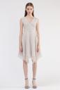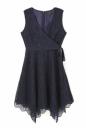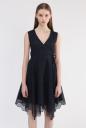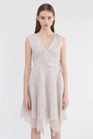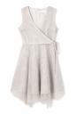 オーガンジーに刺繍を施したオケージョン対応できるワンピース。フチをパイピングしたカシュクールのようなデザインに、ウエスト横に結ぶリボンでメリハリがあります。動きのあるランダムなヘムラインにスカラップでトレンド感をプラスしています。襟ぐりの開きも広く開けているのでアクセサリーが映える1枚です。※裏地付き