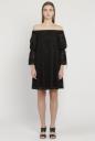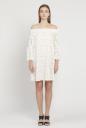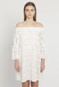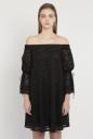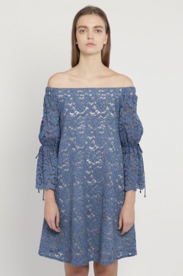 コードレースで仕立てたオフショルワンピース。袖はトレンドのボリュームスリーブを、中央で絞り華奢に映えるデザイン。定番のAラインを今っぽくアップデートし、フェミニンさを加速させ、デイリーからパーティーシーンまで対応できる1枚です。