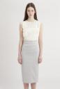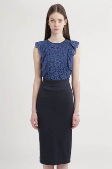 レースブラウス×ラフで厚手のコットン生地のタイトスカートを合わせたセットアップ。単品でも使えるレースブラウスは、コードが太い贅沢なレースを使い、クルーネックにパイピングや袖先をスカラップにしたこだわりデザイン。タイトスカートは、ハイストレッチで穿きやすく、後ろにスリットを施し、キレイ過ぎずラフ過ぎないのがポイントです。大人のフェミニンを無条件で演出できます。※上下セットアップ