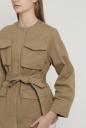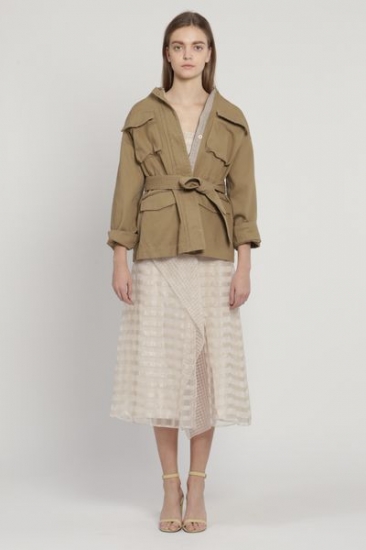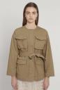 コットンのカルゼで仕立てたブルゾン。サイジングは、メンズ物を女の子が着たような雰囲気にあえて作り、トレンド感のある仕上がり。比翼仕立ての内側は、ファスナーにスナップ釦なので、着崩したり着脱がスムーズです。ウエストマークするベルトでひと結びして、メリハリを演出し、スキニーデニムにTシャツや、シンプルなニットのスタイリングまでお勧めです。