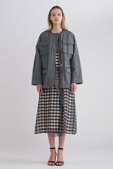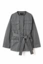 コットンのカルゼで仕立てたブルゾン。サイジングは、メンズ物を女の子が着たような雰囲気にあえて作り、トレンド感のある仕上がり。襟元をパイピングして、比翼仕立ての内側は、ファスナーにスナップ釦付きです。ウエストマークするベルトでひと結びして、メリハリを演出し、スキニーデニムにTシャツや、シンプルなニットのスタイリングまでお勧めです。