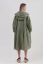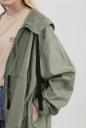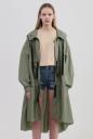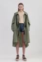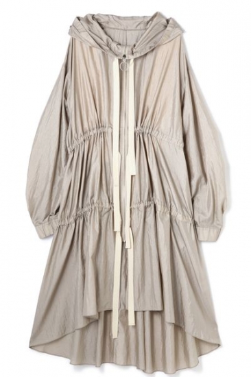 軽やかな素材で仕立てたオーバーサイズのミリタリーフードコート。ボリュームスリーブやカーブの効いたヘムラインでトレンド感を上乗せします。前に三か所リボンを付けることでフォルム調整しつつ、ポイントにもなるデザイン。全体的にイージーなシルエットだからこそ、女っぽさがある肌見せやアイテム合わせで仕上げるのがお勧めです。