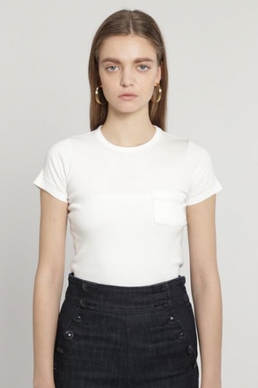 コットンの透けにくい素材で仕立てたTシャツ。ワンウォッシュした風合いに、クルーネックポケット付き、フィット感のある女らしさ漂うデザイン。デニムやハイウエストパンツ、スカートにINした大人カジュアルなスタイリングまでスタンダードに着こなせます。