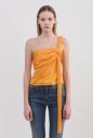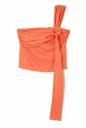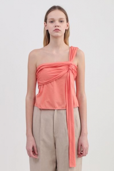 リヨセルコットンの天竺カットソー。しなやかな落ち感をいかし、ギャザーとドレープを入れたアイテムです。トレンド感のあるワンショルダーが目を引くデザイン。肩ヒモは一つ結びでも、片結びでリボンを垂らしてアレンジしても可愛いです。