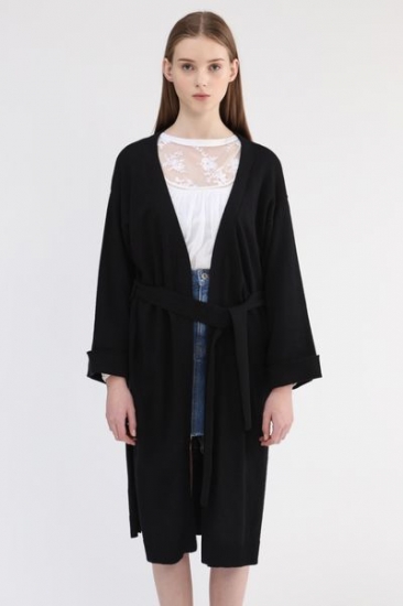 綿ナイロンにドライタッチのナチュラル感のあるカーディガン。ビックスリーブ合わせのガウンのような大きな袖と、長いスリットが今年らしいポイントです。ボディをカバーするIラインに、トッパー型でインナーがキレイに映える1枚です。