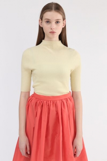 ボディにフィットしたワイドリブニット。リブで編みはじめ、リブで編み終わる、切り替えナシのシンプルさがポイント。一枚着はもちろん、レイヤードstyleにも便利なアイテムは、フィット&フレアやワイド、どこか女性らしいヌケ感のある着こなしをアシストします。