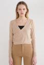 縛って着るコンパクトなニットカーディガン。カシュクールのように前を交差させ、後ろで大きく一つ結びがお勧めです。キレイに編み込まれているので、着膨れ軽減を狙いスッキリと女らしいスタイルを演出。いつもとは違うディティールで瞬時にサマ変わりし、デニムに合わせて前で大きく結んだり、垂らしたりと、印象をかえて羽織れます。
