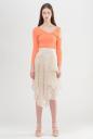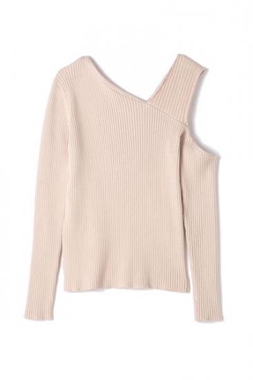 ドライタッチのアシンメトリーショルダーニット。ワンショルダーのような見え方で、左肩が見える新鮮なデザイン。ボディラインにフィットするタイトめのシルエットでスッキリ着ていただけます。上半身フィットするので、パンツやスカートは、ワイドボトムスと合わせると、より女らしく引き立ちます。