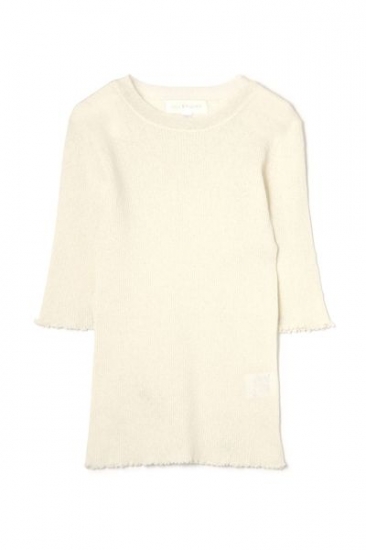 麻混で仕立てたリブニット。シンプルですが、袖先や裾のくるんとなった細かなディティールも凝っています。ボディに沿ったシルエットで女性らしさを上乗せできる1枚です。