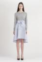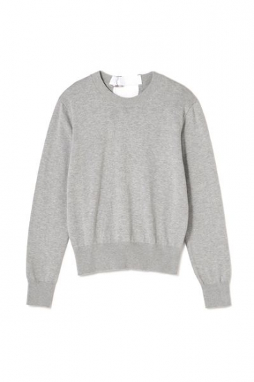 配色グログランリボンがポイントのニット。コットン×シルク2%でサラリと着やすく触りもよい素材で仕立てています。前はシンプル見えですが、後ろはカッティングに大胆なアクセントになるグログランリボンを施したデザイン。スカートに合わせたコーディネートがお勧めです。