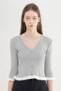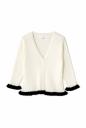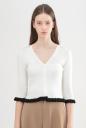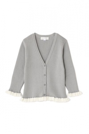 大げさな配色フリルがトレンド感と甘さを兼ね備えたリブニットカーディガン。滑らかな風合いにボディに沿ったシルエットで女性らしさをアプローチ。七分の袖先や裾の配色フリルを際立わせるよう釦はベースと同色です。スカートやワイドパンツまで相性良く、単品はもちろん、同素材ニットとアンサンブルで着ても今っぽいバランスで着こなせます。