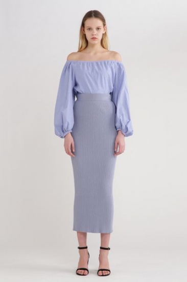 しっとりした素材で仕立てたリブ編みニットスカート。ヒップに沿ったシルエットで女らしく、ウエストゴムで穿きやすい1枚。後ろは、深く入ったスリットで足さばきよく、カジュアルもちょっぴりセクシーさ漂う1枚です。