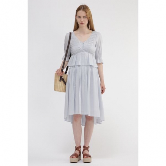 ポリーストライプイレギュラーヘムフレアースカート