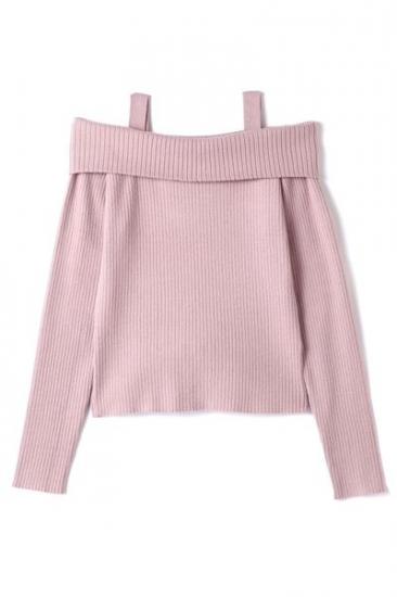ドキッとさせるオフショルダーでヌケ感を覗かせるニット!ボディに沿ったシルエットでスッキリと着こなせます。オフタートルは、レイヤードしたような肩の部分で露出を減らし、後ろはレースアップが施され、可愛さを手に入れた1枚です。