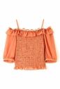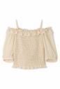 ボディを引き締めるシャーリングにスモッキング刺繍がこだわりのトップス!細い肩ヒモで絶妙な肌見せと、ふんわりスリーブがエアリーで女の子らしい仕上がりです。襟元や裾にラッフルをドッキングしてジルバイらしい要素をプラス。オフショルーとしても着こなせ、身頃は裏地付きで透けにくくなっています。ネックレスやハットをプラスするとよりアクティブに仕上がります。