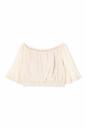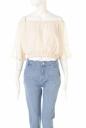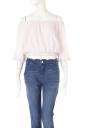 ふわっとしたベルスリーブで季節を感じるブラウス!ロマンティックなゆるフォルムに、デコルテをスッキリ見せ、後ろはリボンを結んだ可愛いデザイン。今シーズン鮮度を上げる短丈でカジュアル感をグッと増したコーディネートを楽しめます。