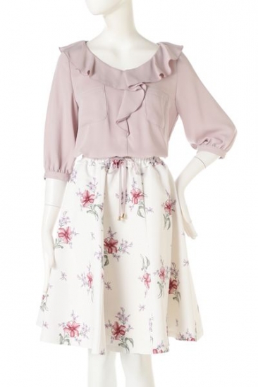 襟元の大きなラッフルがフェミニンなブラウス!エアリーな素材感や七分袖のなので、気温に合わせてカーディガンやジャケットを羽織り、今からロングランでコーディネートに合わせられます。