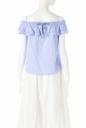 襟元のダブルラッフルが可愛いブラウス!襟元はギャザーゴム入りなので、そのままでもオフショルとしても着こなせます。後ろはレースアップが施されたトレンド感のある凝ったデザイン。ワイドパンツやスカートまで相性よく涼しげな1枚です。