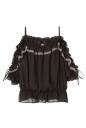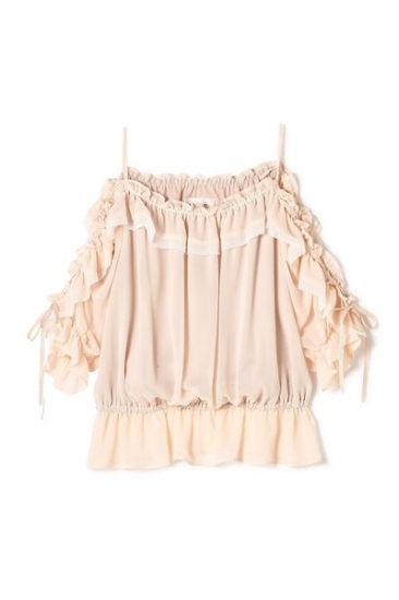 波打つフリルで立体的なフォルムを描くパフスリーブブラウス!腕部分はレースダウンになっていて、ちょこっと肌見せがセクシーなデザイン。胸まわりはゴムが施されているので着心地よく、身頃は裏地付きです。ウエストはブラウジングでエアリーでメリハリのある着こなしが出来る1枚です。