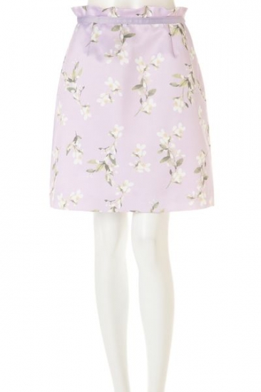 ウエストの波打つスカラップが可愛いミニ丈スカート!一面に咲いたフラワープリントが、コーディネートを華やかに飾ります。生地と同色のグログランをウエストに一周し、メリハリを加えているので、トップスINも映える1枚。※裏地付き