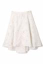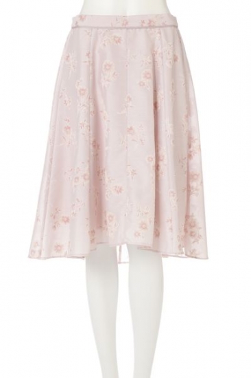 オパール加工が凝った素材で仕立てたスカート!ウエストから緩やかに広がるシルエットは、変形ヘムラインで変化球をつけ、軽やかさアップ。ジルバイオリジナル花柄が一面に咲き、コーディネートのアクセントになってくれます。※裏地付き
