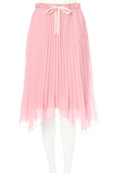 ジグザクプリーツにイレギュラーへムで足元軽やかになるスカート!ウエストゴムで穿きやすく、中央でリボンを結びINしたコーディネートがすっきりキマる1枚。春夏らしいカラーリングでご用意しており、第一印象を華やかに見立ててくれます。※裏地付き